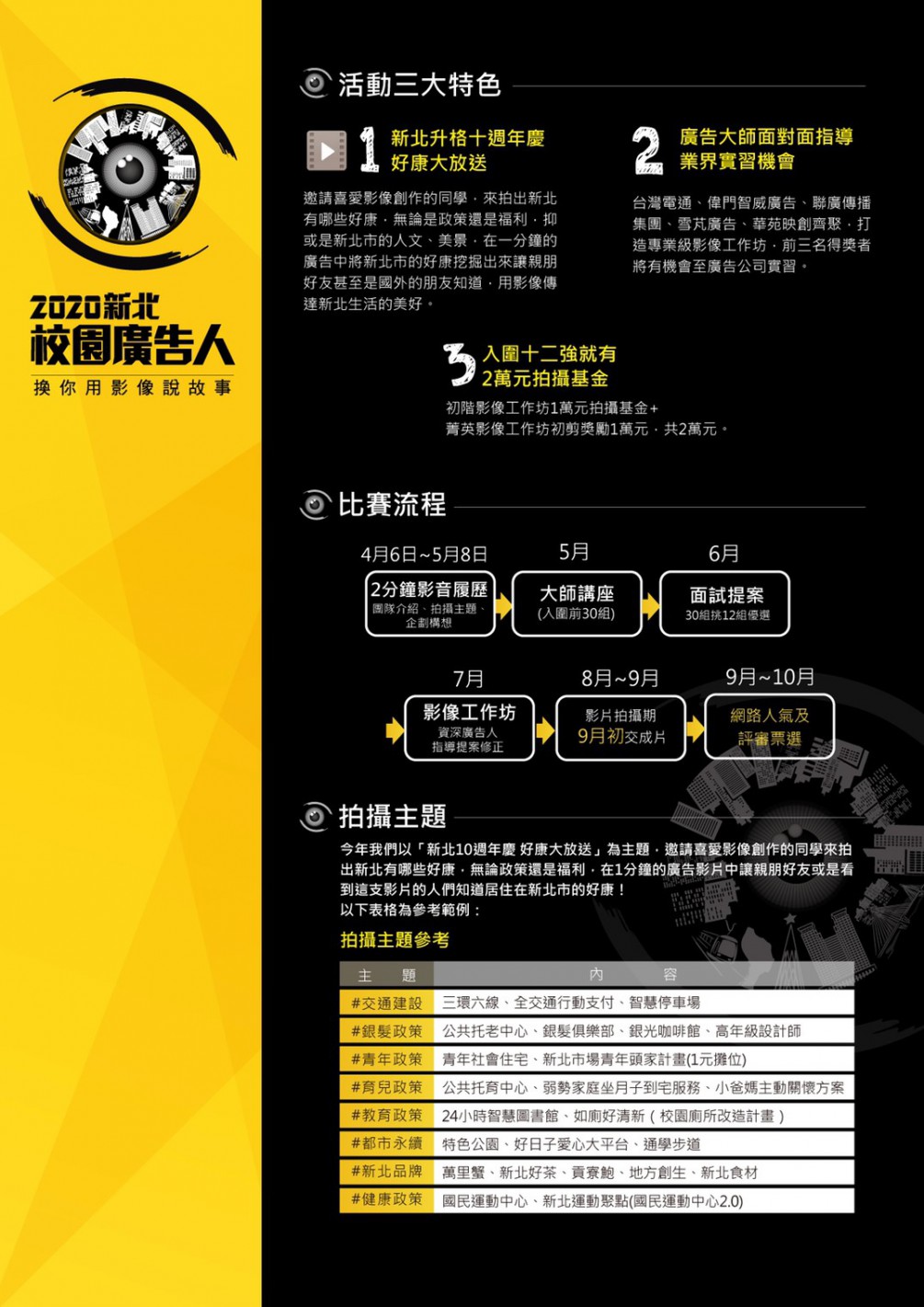 2020新北校園廣告人創意影片徵件,即日起至5/8網路報名截止!